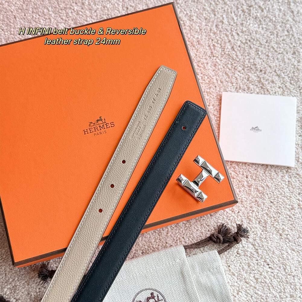 H Infini belt buckle Reversible leather strap 24 mm