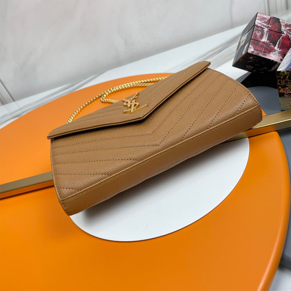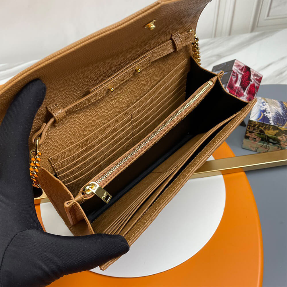YSL classic cassandre chain wallet in grain de poudre leather
