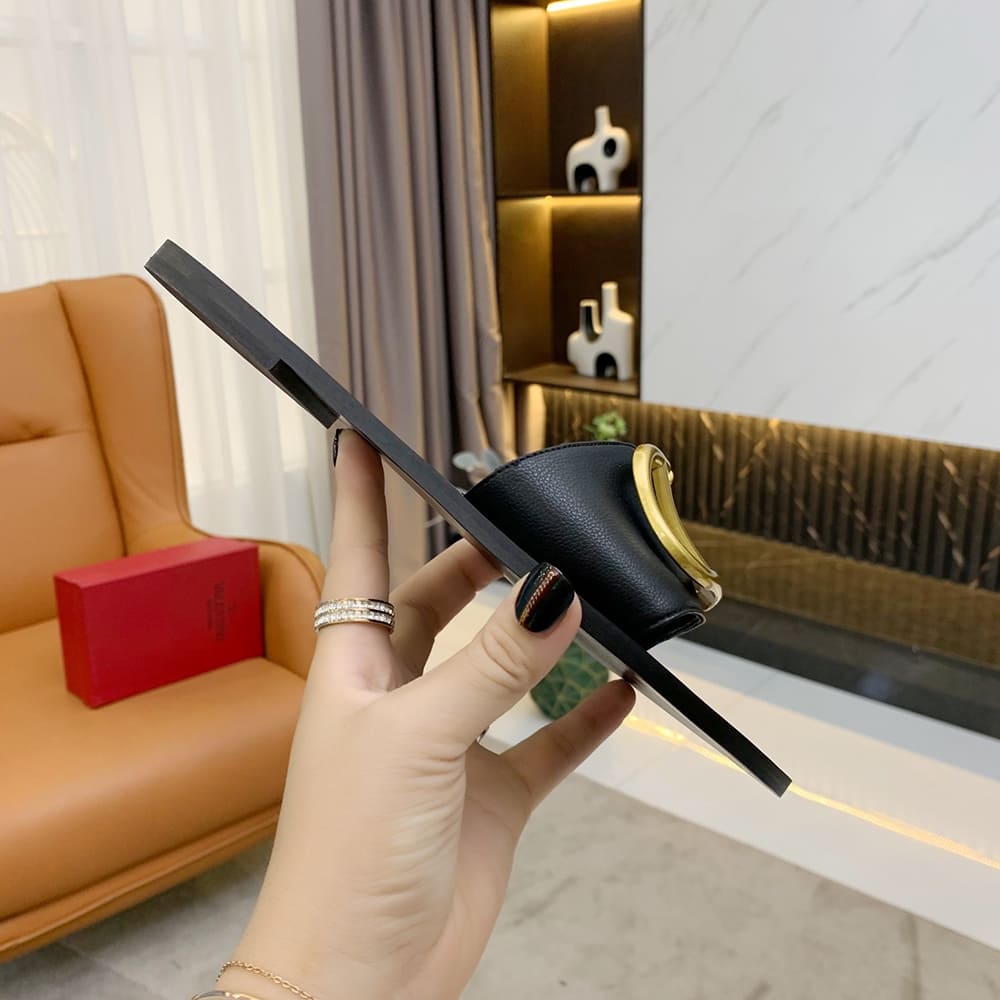 VALENTINO VLOGO SIGNATURE grained cowhide decorative elements slipper sandals (heel height 0.5 cm)